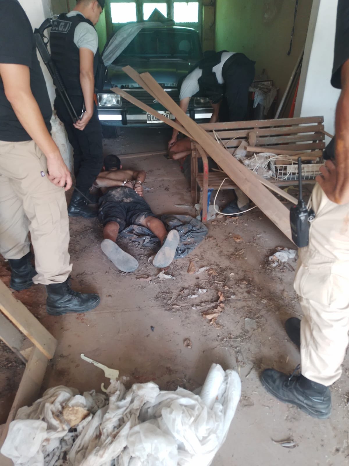 Al lugar arribaron móviles de la Guardia Urbana Rafaelina, quienes recorrieron el perímetro y divisaron a un masculino transitando sobre calles Mainardi y Ruta Nacional N°34 hacia el asentamiento. Tiempo después, desde el Centro de Monitoreo Urbano informaron al 911 que el individuo en cuestión -posteriormente identificado como «Chuqui» O; se encontraba sobre calle 500 millas y Ernesto Salva, ingresando al loteo Giménez.