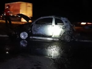Si bien los ocupantes del rodado pudieron bajar sin inconvenientes, el coche sufrió destrucción total al propagarse con rapidez las llamas.