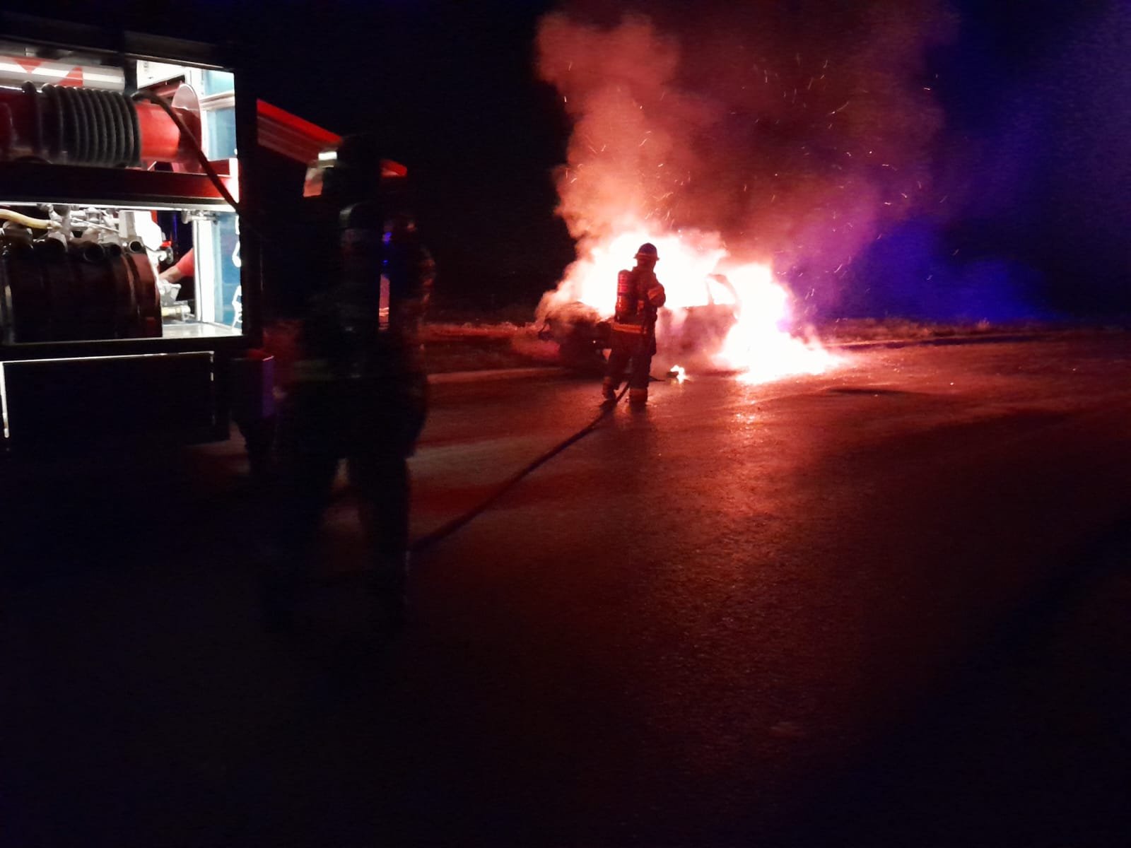 Si bien los ocupantes del rodado pudieron bajar sin inconvenientes, el coche sufrió destrucción total al propagarse con rapidez las llamas.