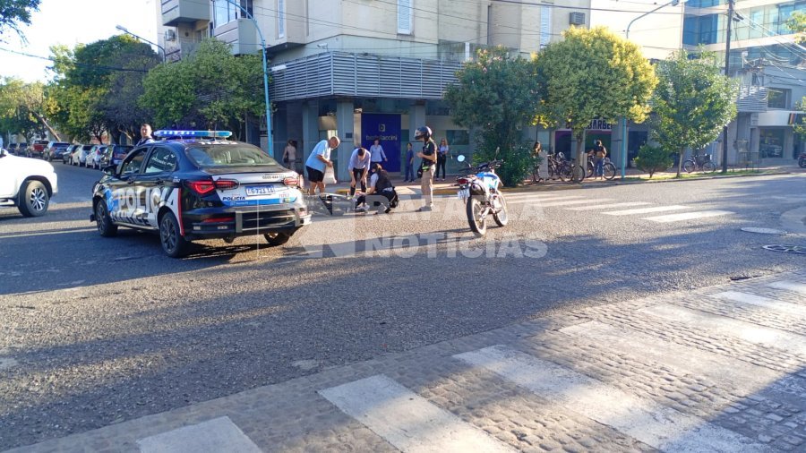 Un accidente de tránsito se registró en las últimas horas en la intersección de Lavalle y Sarmiento, donde una motociclista resultó lesionada tras un siniestro vial.