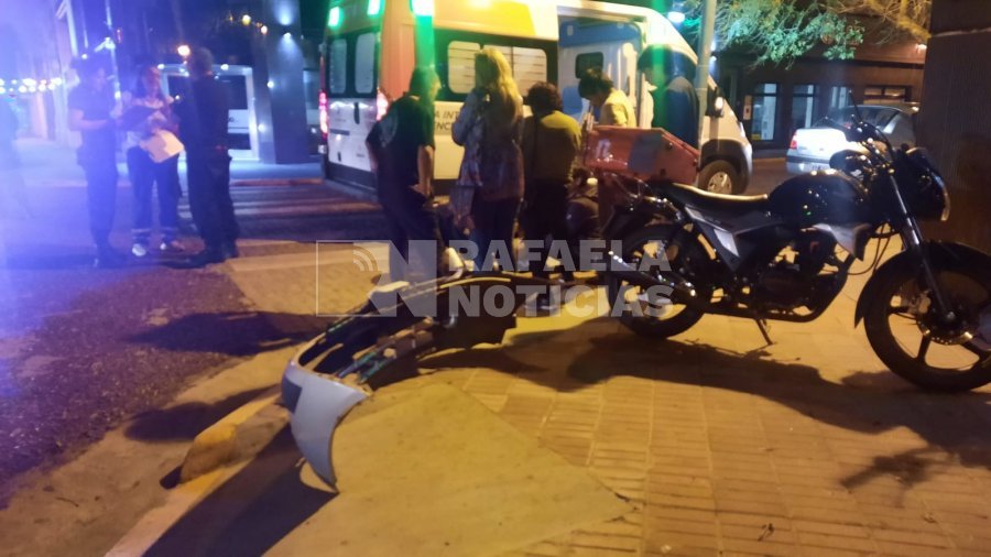 Un accidente de tránsito se registró este domingo por la noche en la intersección de Sarmiento y Lavalle, en el centro de la ciudad. El siniestro involucró a un automóvil Renault Clio y una motocicleta.