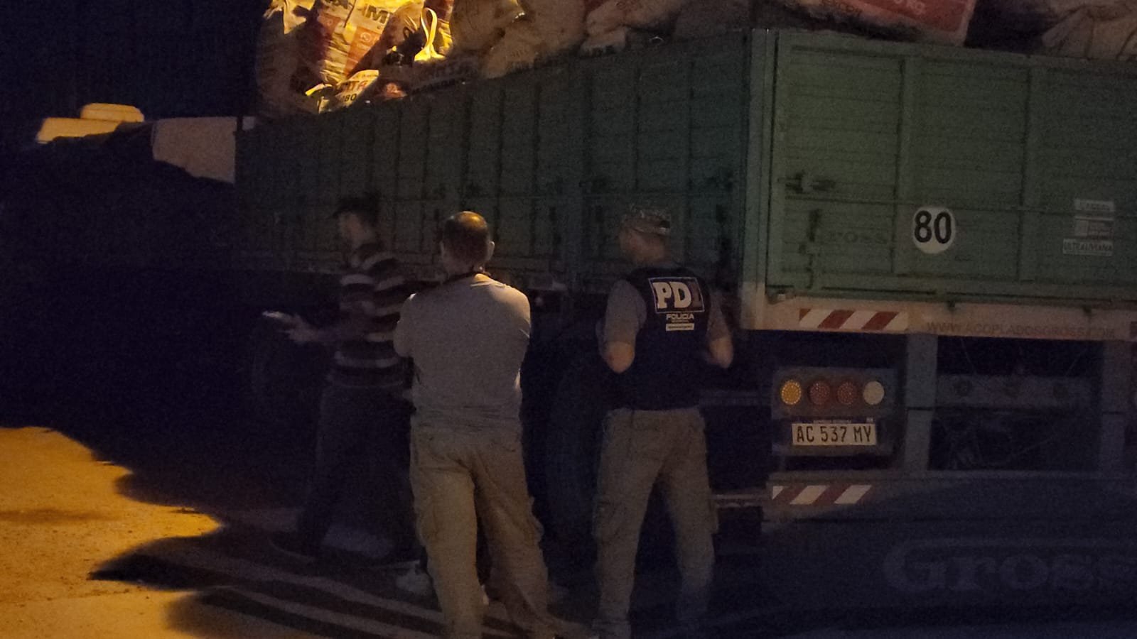 “Anoche comenzaron a realizarse por parte del personal de PDI bajo la dirección de la Fiscal Lorena Corakis, diligencias investigativas que finalizaron con el secuestro de un camión con un cargamento muy importante sobre el cual se está trabajando en estas horas de parte del personal policial que comanda el Comisario Secotti. Se han detenido a dos personas”.