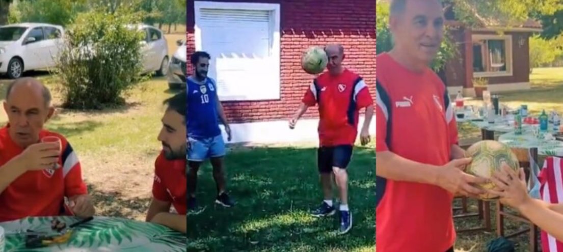 «Le hicimos un asadito«, añade el autor del video. En ese sentido, muestra clips en los que el astro argentino almuerza junto a los pibes. Incluso, el exjugador de Independiente contó anécdotas de su época en el Rojo y del Mundial de México 1986.