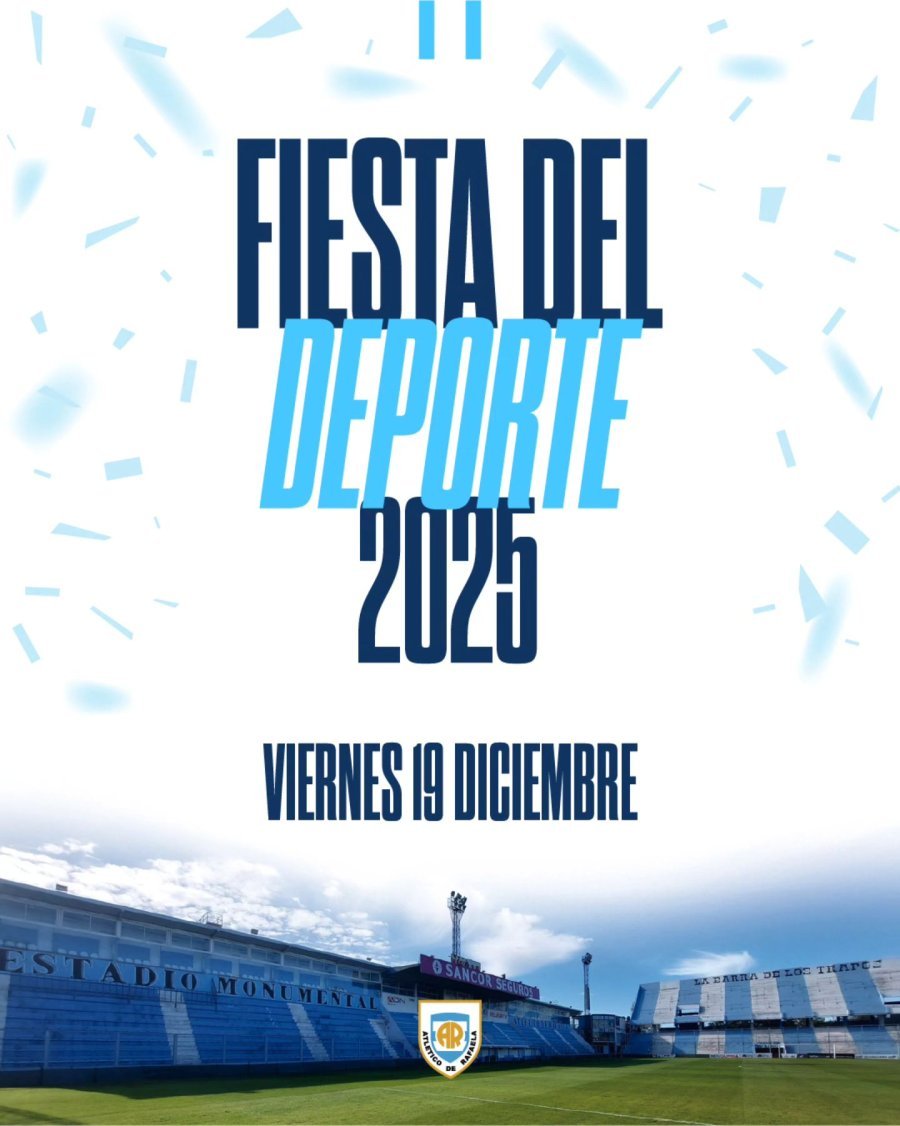 Luego de más de 20 años, la comunidad de Atlético de Rafaela volverá a vivir una noche muy especial. El viernes 19 de diciembre, en el Estadio Monumental, se llevará a cabo la Fiesta del Deporte y la Familia Celeste, donde se agasajará a cada uno de los deportistas que acompañó durante el 2025. Si el clima no acompaña, se desarrollará en el Estadio Arq. Lucio Casarín.Habrá entrega de premios, elección del Deportista del Año, Show en Vivo, Animadores, Sorteos y muchas sorpresas para vivir una jornada bien Celeste.Las tarjetas están a la venta en la Secretaría Administrativa «Julio Litvak» (Urquiza y Dentesano), pudiendo realizar las consultas correspondientes al 3492 – 651461.