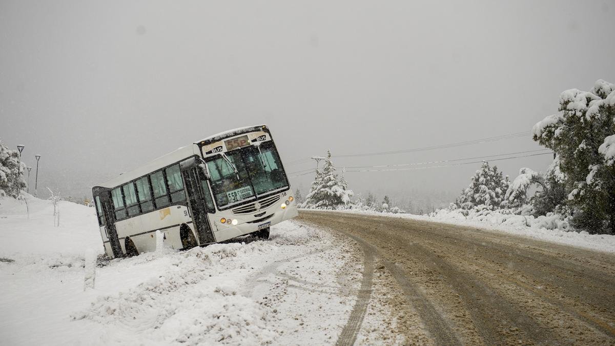 La nieve en las calles de la localidad andina complicó la circulación de los vehículos y como resultado hubo choques, autos cruzados y hasta modificaciones en el recorrido del transporte urbano.