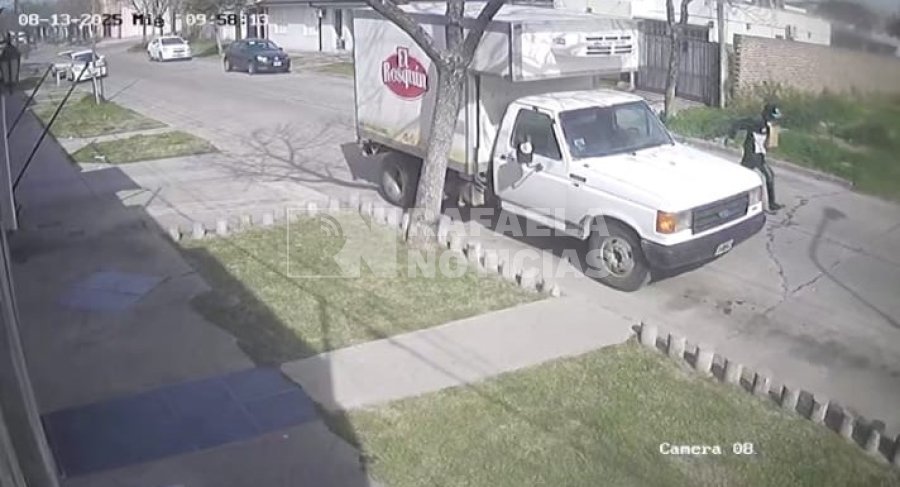 Minutos antes de las 10, tal como muestra la imagen de una cámara de seguridad privada, un joven caminaba por calle Melvin Jones, entre Estrada y Aguado. Al llegar a un utilitario de un proveedor, que estaba estacionado frente a una rotisería, el sujeto lo pasó, pero luego volvió sobre sus pasos. Abrió la puerta trasera y sustrajo mercadería que, según vecinos, estaría valuada en unos 100 mil pesos, para luego escapar corriendo.