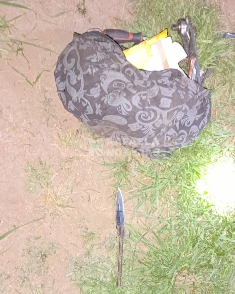 Minutos más tarde, móvil de la GUR que se encontraba patrullando observó al sujeto señalado sobre calles Brigadier López y Peterlin. El muchachito llevaba consigo un bolso con herramientas varias e intenta evadir a las autoridades mostrando un arma blanca con el objetivo de amedrentamiento, pero finalmente fue reducido