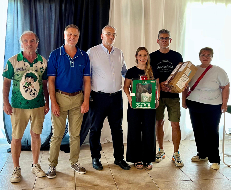 El momento fue oportuno para que Calvo hiciera entrega de un desfibrilador externo automático (DEA) portátil al Club Unión de Sunchales, en respuesta a una solicitud realizada por escrito por la institución deportiva, que será destinado a fortalecer la prevención y el cuidado de la salud en niños, niñas y jóvenes que practican fútbol en el club.