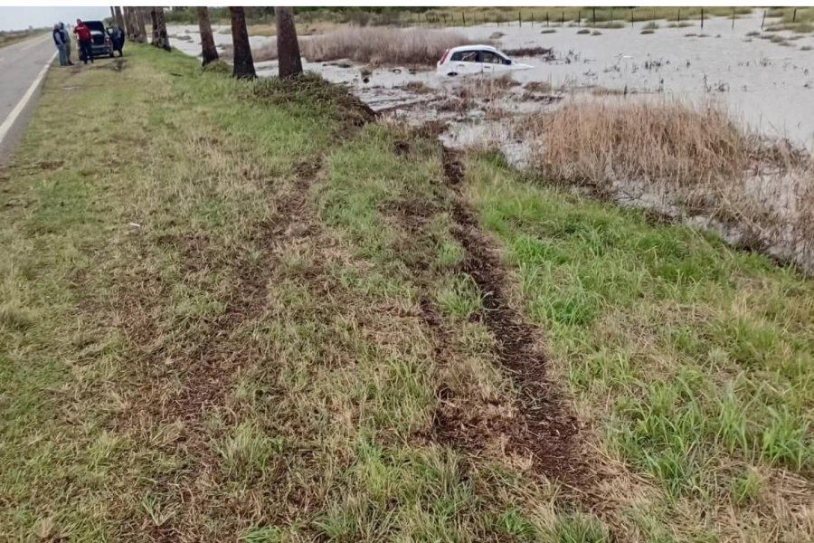 Cinco policías que trabajan en Rafaela terminaron con el auto en medio del agua