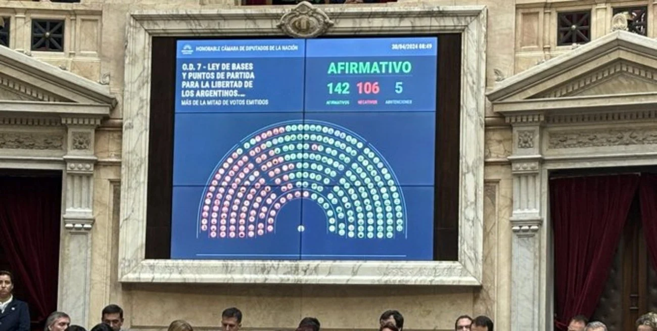 La votación en general obtuvo 142 votos a favor, 106 rechazos y 5 abstenciones. En contra de la ley votaron Unión por la Patria, la Izquierda, los socialistas santafesinos Mónica Fein y Esteban Paulón, los santacruceños que responden a Claudio Vidal, y la cordobesa Natalia De La Sota.