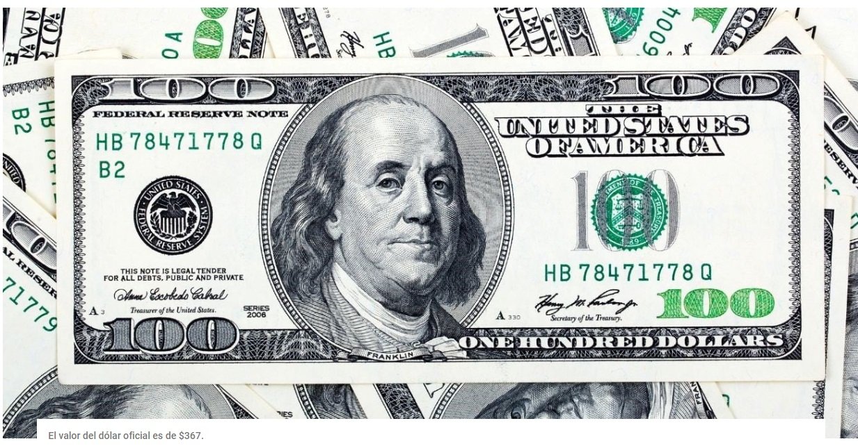 El valor del dólar oficial se mantiene en $367, y el dólar mayorista, utilizado en operaciones de comercio exterior, se establece en $350.