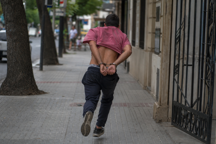 Una vez en la calle, el detenido emprendió una veloz huida. La policía inició un operativo cerrojo que culminó rápidamente en la intersección de calles O’Higgins y Víctor Manuel. Al momento de ser interceptado, el joven caminaba con el torso desnudo y utilizaba su remera rosada para envolver sus muñecas y ocultar las esposas. Al verse rodeado por los uniformados, no opuso resistencia y fue trasladado directamente al Pabellón de Aislamiento de la Alcaidía.