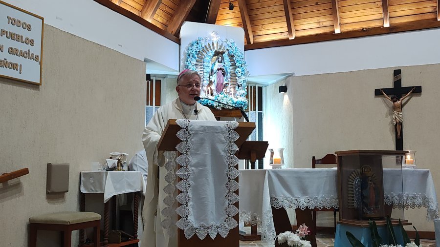 En el marco de la fiesta patronal de Nuestra Señora de Guadalupe, Monseñor Pedro Torres presidió la misa en un templo colmado, que rebalsaba de fieles y con numerosas personas siguiendo la celebración desde el exterior. La jornada estuvo atravesada por un clima de profunda devoción, marcado además por un gesto especial: la presencia de la imagen de la virgen peregrina, que durante el Año de la Esperanza recorrió comunidades de toda la diócesis.