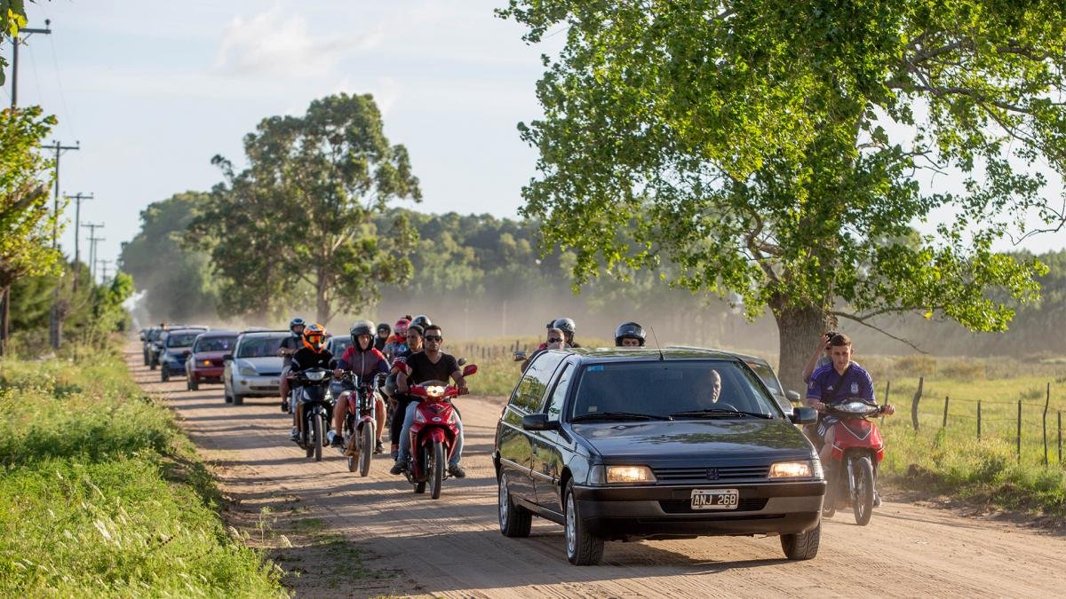 Luego, cerca de las 17.20 partió una larga caravana de más de 50 autos particulares y unas 15 motocicletas desde el centro de Santa Teresita hacia la vecina Mar de Ajó, la cual fue acompañada por personas de a pie que se acercaban a los vehículos al paso de los mismos.