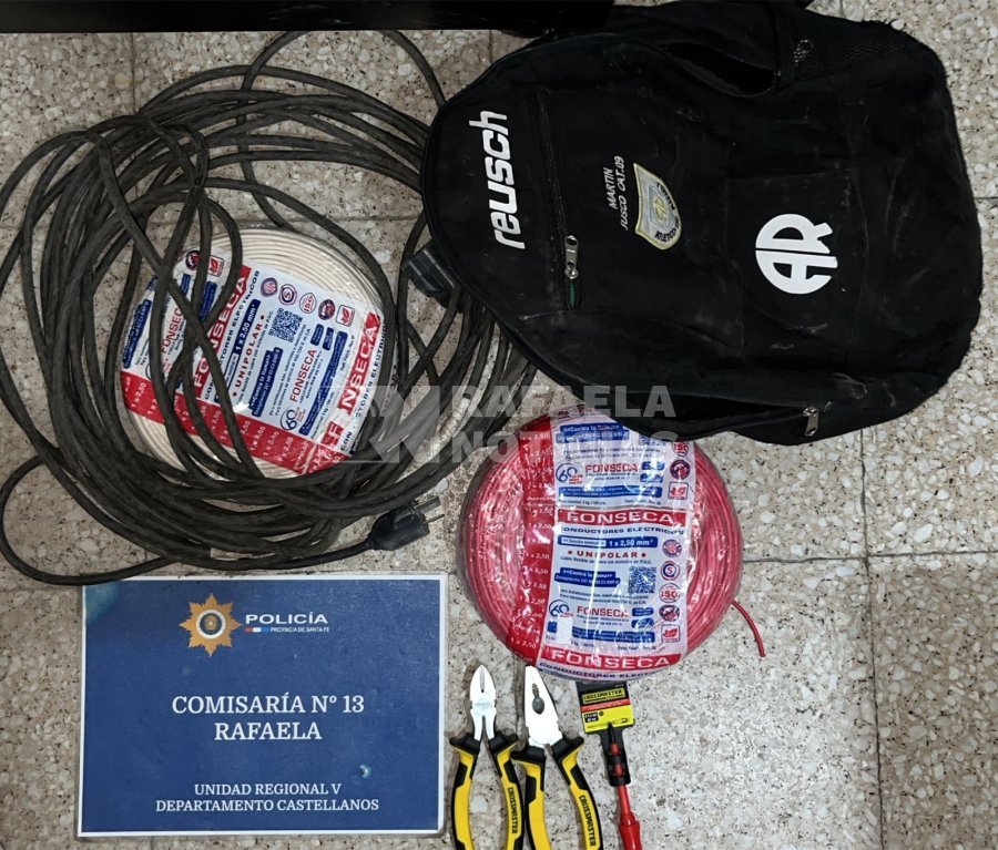 En primer lugar, efectivos de la Brigada Motorizada interceptaron en la intersección de calles C. de Esperanza y A. Sabin a un hombre de 35 años que se desplazaba a pie cargando una mochila. En su interior llevaba dos rollos de cable nuevos y cerrados, un destornillador, una pinza, un alicate y un alargue de aproximadamente 18 metros. Al no poder justificar la procedencia de los elementos, se dispuso su secuestro y el traslado del individuo a la Comisaría 13ª, quedando detenido por disposición del fiscal de turno.