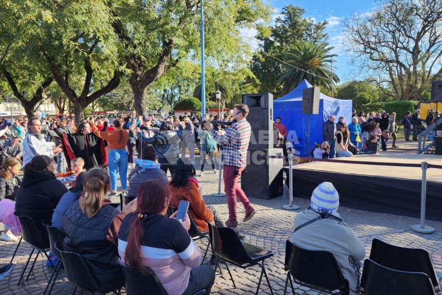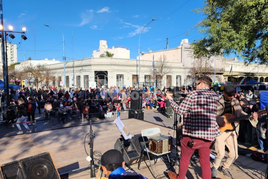 El festejo popular en la Plaza 25 de Mayo se llevó a cabo durante la tarde del sábado y contó con espectáculos de danza, folklore, Plaza Feria y la Agenda de Infancias. Además, el Museo Histórico Municipal estuvo brindando Juegos con Historia.