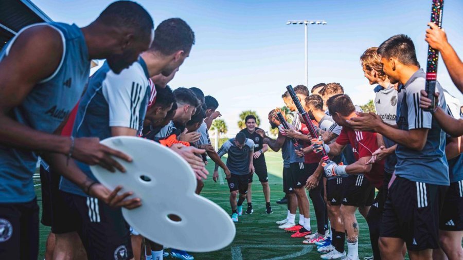 El entrenador Gerardo Martino y los jugadores del equipo de Florida recibieron al astro argentino formando un pasillo con serpentinas y carteles con el número 8.
