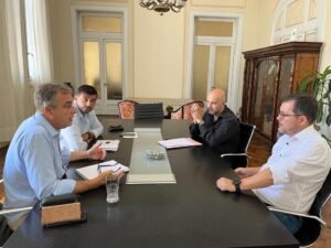 En la mañana de este lunes, el intendente Luis Castellano y el nuevo ministro de Seguridad de la Provincia de Santa Fe, Claudio Brilloni, mantuvieron una reunión para coordinar acciones de trabajo en Rafaela. También fueron parte del encuentro el secretario de Prevención de Seguridad, Maximiliano Postovit, y el secretario de Seguridad Pública provincial, Marcos Romero.