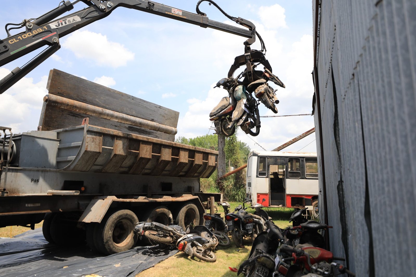 Este martes, en el galpón municipal que se ubica sobre calle Acuña, comenzaron el proceso de compactación de 700 motos y 55 automóviles que fueron retenidos en operativos de tránsito.