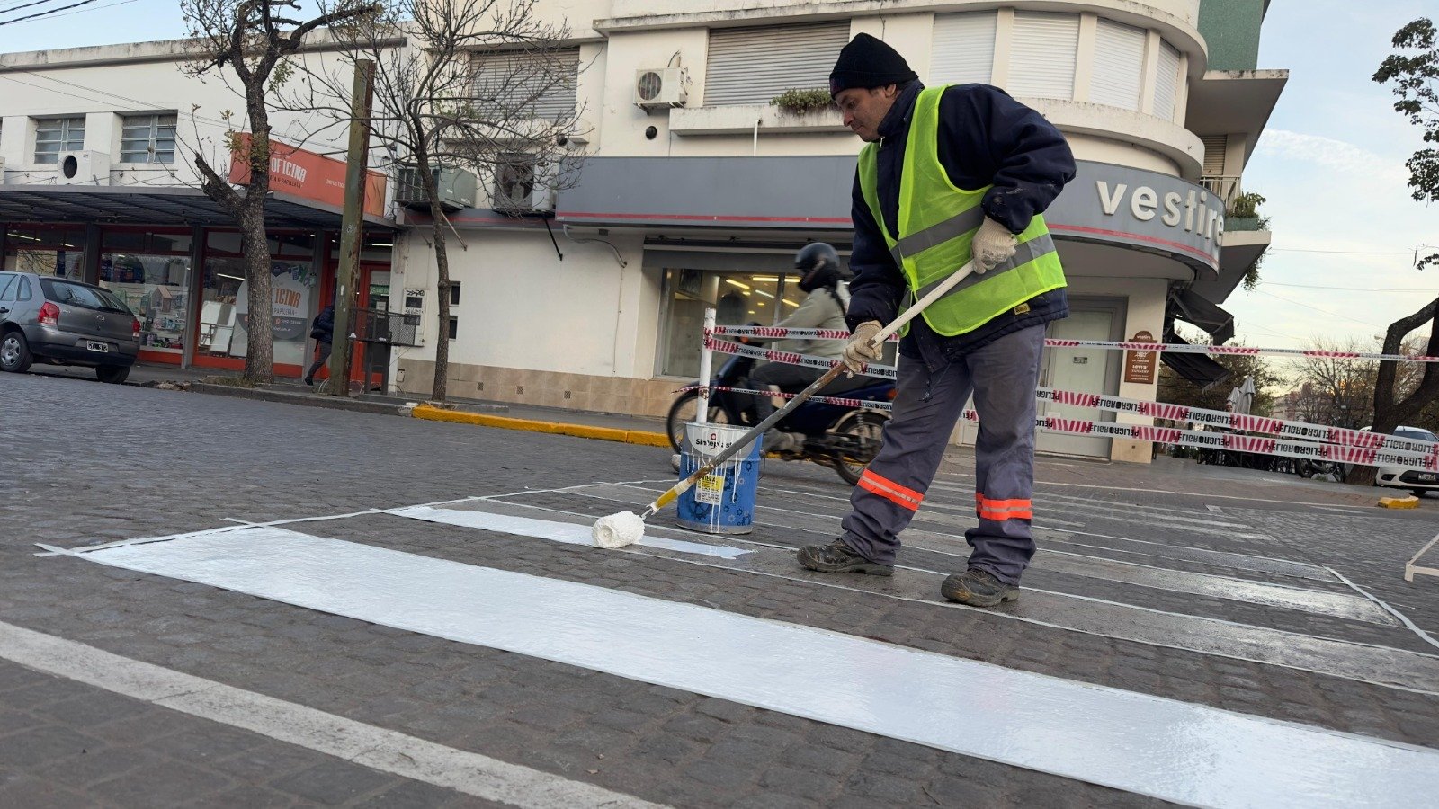Las tareas consisten en la limpieza del sector a intervenir, aplicación de imprimación, aplicación de pintura acrílica vial en frío y microesferas de vidrio. Además se realizará el mantenimiento de las dársenas de estacionamiento a 45º, el repintado de vedas en cordones y ochavas, y el mantenimiento de cartelería en general.