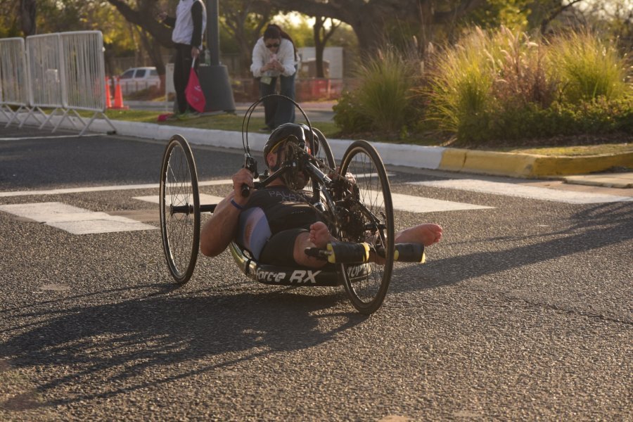 “La pista estuvo espectacular, un lujo. Estoy acostumbrado a entrenar con vehículos circulando, así que hayan hecho cortes de tránsito es un espectáculo. La Laguna Setúbal divina para nadar, y en mi caso que soy ciego, la parte pedestre perfecta: sin escalones, sin lomas de burro. Con mi amigo y guía Juan disfrutamos mucho la carrera, hasta pudimos charlar en algunos momentos”.