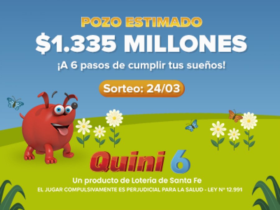 Lotería de Santa Fe les recuerda el increíble pozo que se pondrá en juego este domingo en el Quini 6 con $1.335 millones estimados El próximo sorteo te ofrece los siguientes pozos estimados individuales;
