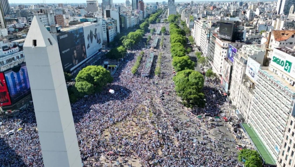El Obelisco ya está repleto de hinchas, en una postal similar a lo que sucedió el domingo con la consagración de la selección argentina en el Mundial de QAtar.