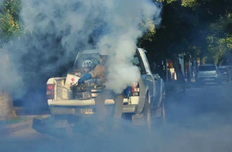 Las tareas de fumigación se hicieron con una camioneta y se realizaron de la misma manera que cuando existen brotes extendidos de dengue. Sin embargo, hay una diferencia muy importante: el mosquito que actúa como vector en el caso de la encefalomielitis es el del tipo «culex», mucho más común que el aedes que transmite el dengue; y que no es un mosquito «domiciliario», sino que está presente en distintas áreas urbanas y rurales. Además, tiene otra diferencia respecto al aedes: pica una sola vez, ya que se alimenta hasta saciarse completamente, mientras que el aedes puede picar varias veces.