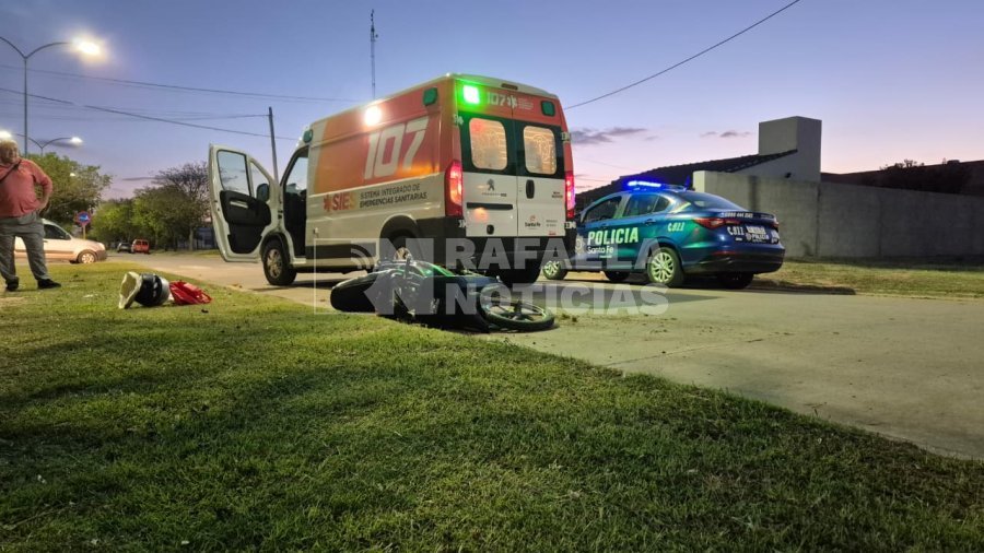 Según pudo saber Rafaela Noticias, el siniestro involucró a una motocicleta Guerrero Trip, conducida por un hombre -cuya edad no fue precisada-, y a una camioneta Renault Kangoo. De acuerdo a los primeros testimonios, el motociclista habría intentado esquivar al vehículo utilitario tras una maniobra de cercanía y terminó impactando contra el cordón del cantero central.