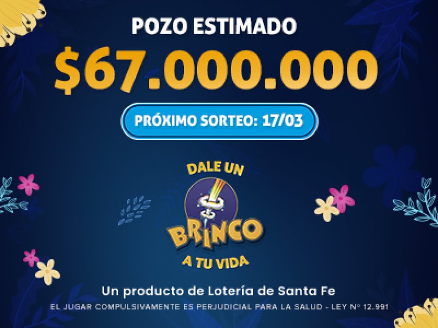 Lotería de Santa Fe les recuerda el sorteo de Brinco del próximo domingo que se viene con un pozo estimado de $67 millones.