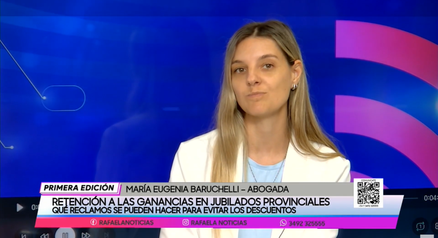 La abogada María Eugenia Baruchelli brindó precisiones sobre la retención del impuesto a las ganancias en jubilados provinciales y explicó de qué manera puede evitarse el descuento mediante un reclamo judicial.