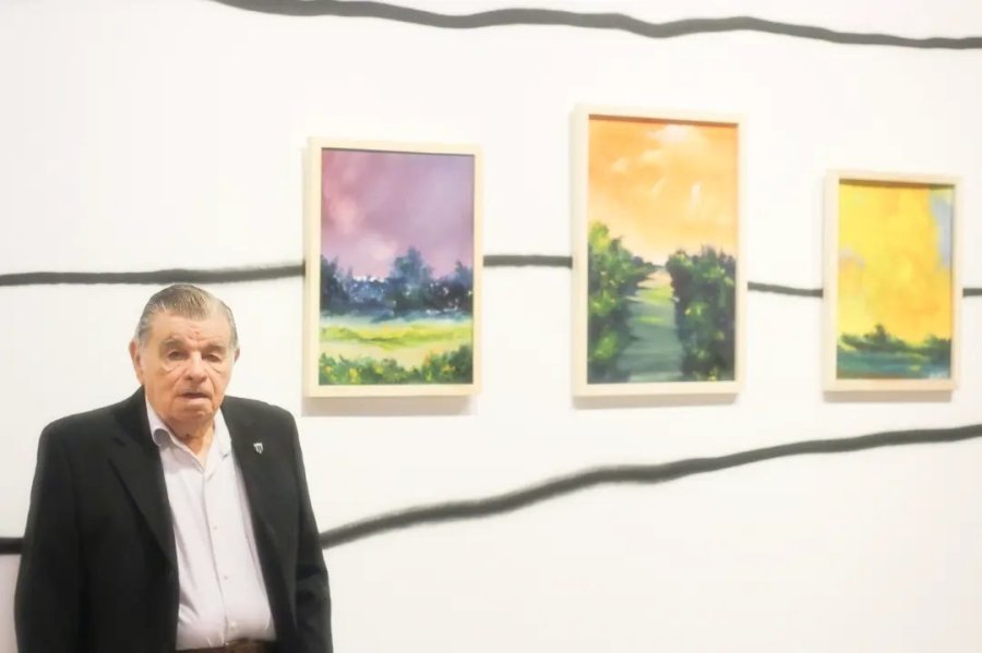 «Lo recordamos con estas fotos de la inauguración de la última Bienal en octubre de 2023 -en la que fue seleccionado-, y del cierre de la misma, en marzo de 2024, donde Oscar nos brindó un emotivo discurso sobre su obra ´Tríptico de un paisaje pasional'», expresaron desde el Museo Municipal de Arte Dr. Urbano Poggi.