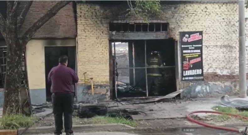 Pasadas las 05 horas de este martes, se registró un voraz incendio en un local de calle Maipu al 400, donce funcionan un lavadero y una gomeria. Según información a la que accedió este medio, las pérdidas son totales, y el aviso a Bomberos lo dieron los propios vecinos. Lamentablemente al llegar al lugar, se encontraron con daños totales.