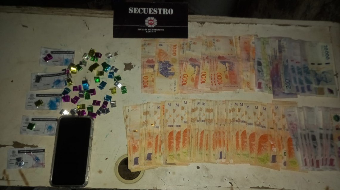 En otra vivienda, ubicada en Azcuénaga al 3800, se hallaron 26 envoltorios de cocaína -con un peso de 10 gramos-, un plato y otros elementos con vestigios de la sustancia, una balanza de precisión, recortes de nylon y papeles satinados, además de 162.700 pesos. En el lugar se encontraba una adolescente de 14 años, cuya situación fue puesta en conocimiento de la Subsecretaría de la Niñez y del equipo local de la Municipalidad de Santa Fe.