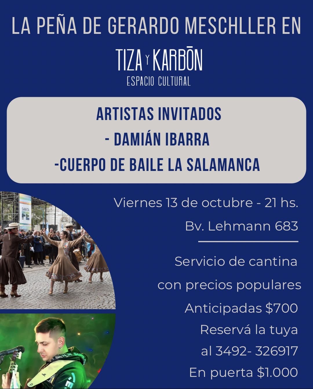 La segunda peña de este Ciclo tendrá lugar este viernes 13 de octubre a las 21, en Bv. Lehmann 683. En la ocasión, se contará con las actuaciones del Cuerpo de Baile La Salamanca, Damián Ibarra y el propio Gerardo Meschller.