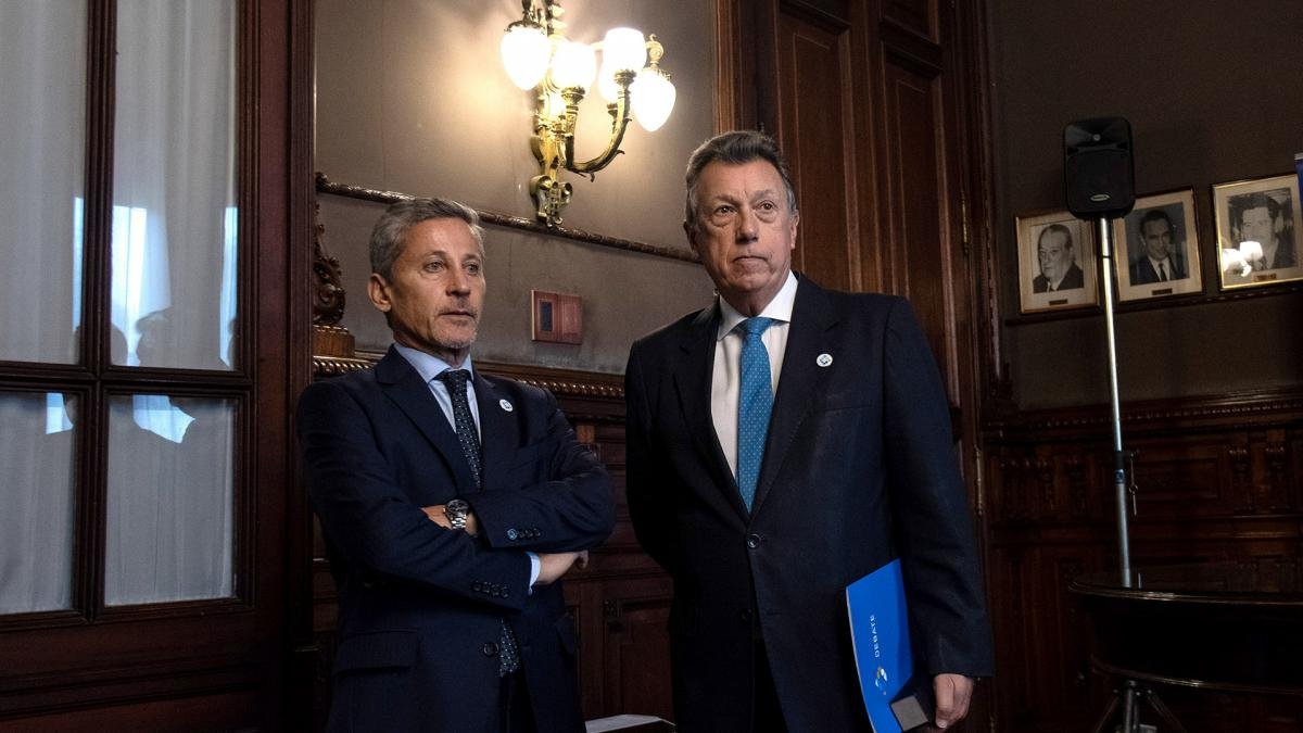 La presentación del Debate Presidencial 2023 estuvo a cargo de las autoridades de la CNE -su presidente, Alberto Dalla Via; su vicepresidente, Santiago Corcuera, y el juez de Cámara Daniel Bejas-, en un encuentro con la prensa realizado en la sede de la institución ubicada en el centro porteño.