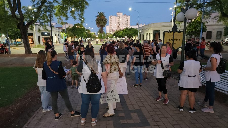 La concentración comenzó en la Plaza 25 de Mayo, desde donde los manifestantes marcharon hasta la Jefatura de Policía de la Unidad Regional V y luego regresaron nuevamente a la plaza. Durante el recorrido, portaron pancartas con reclamos vinculados a salarios dignos, restitución del ámbito paritario y mejores condiciones laborales.
