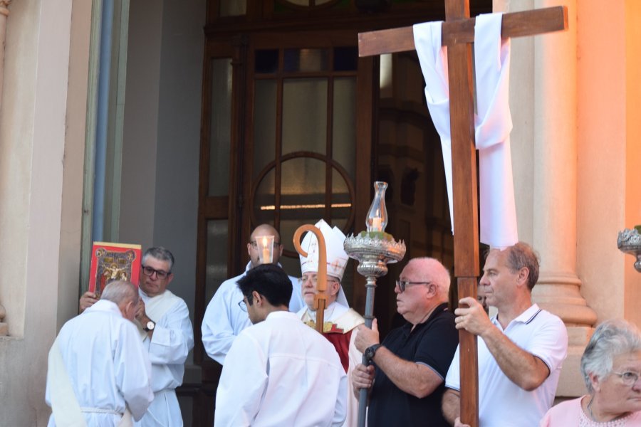 La jornada comenzó con una procesión en Boulevard Roca y Colón, donde numerosos fieles portaron antorchas y velas, acompañados por las intenciones recogidas en el Sanatorio Moreno y la Clínica Parra. La peregrinación concluyó en la Catedral, donde se llevó a cabo un momento de oración frente al Cristo que se encuentra en la entrada desde hace 80 años.