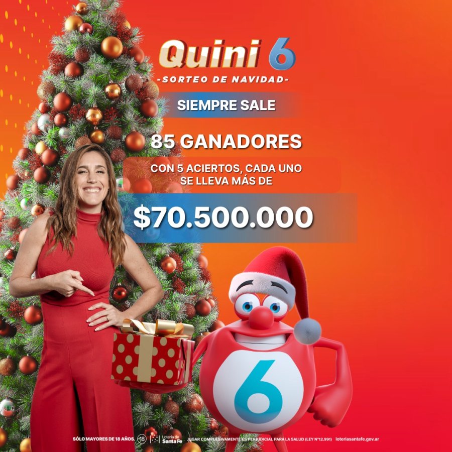 Nos volvemos a encontrar el próximo miércoles 24 de diciembre a las 19 hs para esperar la navidad con mucha ilusión en la sala de sorteos oficial de Lotería de Santa Fe para renovar tus chances de ganar.