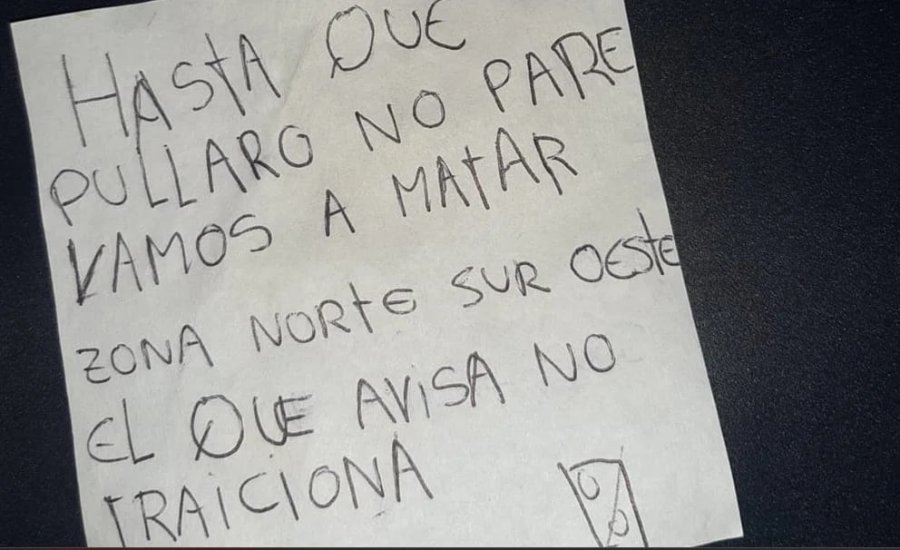 La nota fue hallada frente a la casa de una mujer en la calle Cayetano Silva al 1200, en la zona norte, a poca distancia del policlínico PAMI 2. El lugar no fue baleado. La mujer, por lo pronto, no tendría conexión alguna con el hampa. Ella misma reportó el mensaje a las autoridades.