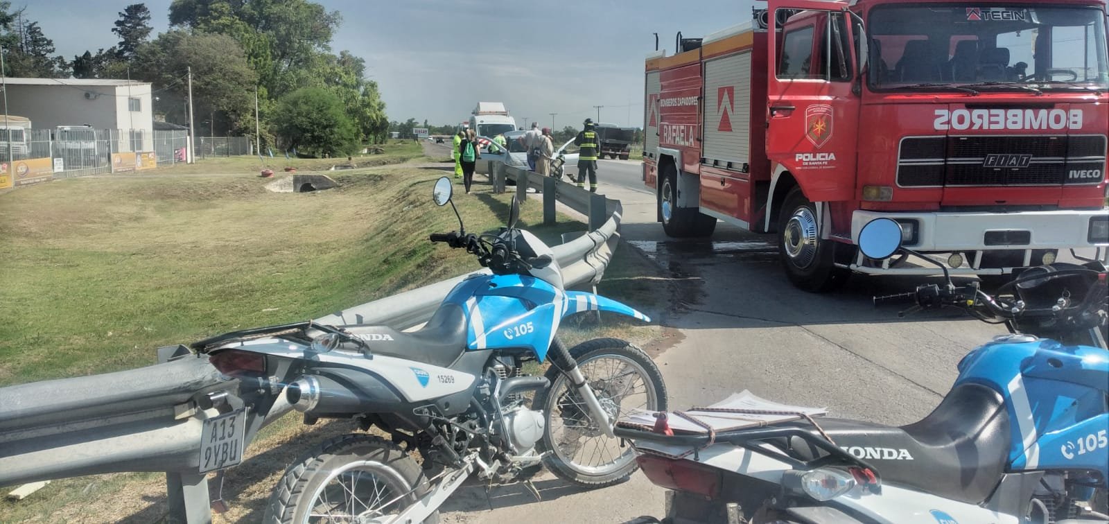 Accidente e incendio en la rotonda de Acceso Norte de la RN 34
