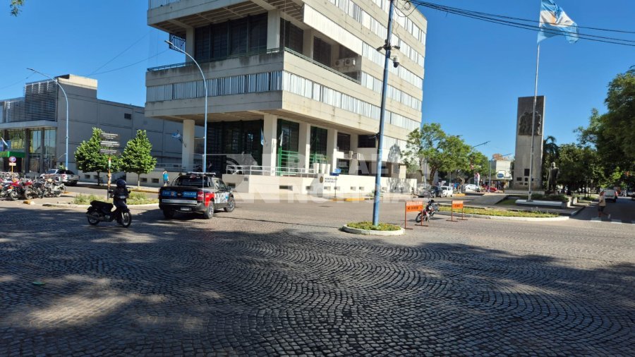 En la mañana de este jueves permanece cortado el tránsito en la zona del Palacio Municipal. Concretamente, desde avenida Lehmann está cortada la calle Moreno, y también Lehmann desde Maipú. Además, hay presencia policial en la escalinata de acceso al hall principal del edificio.