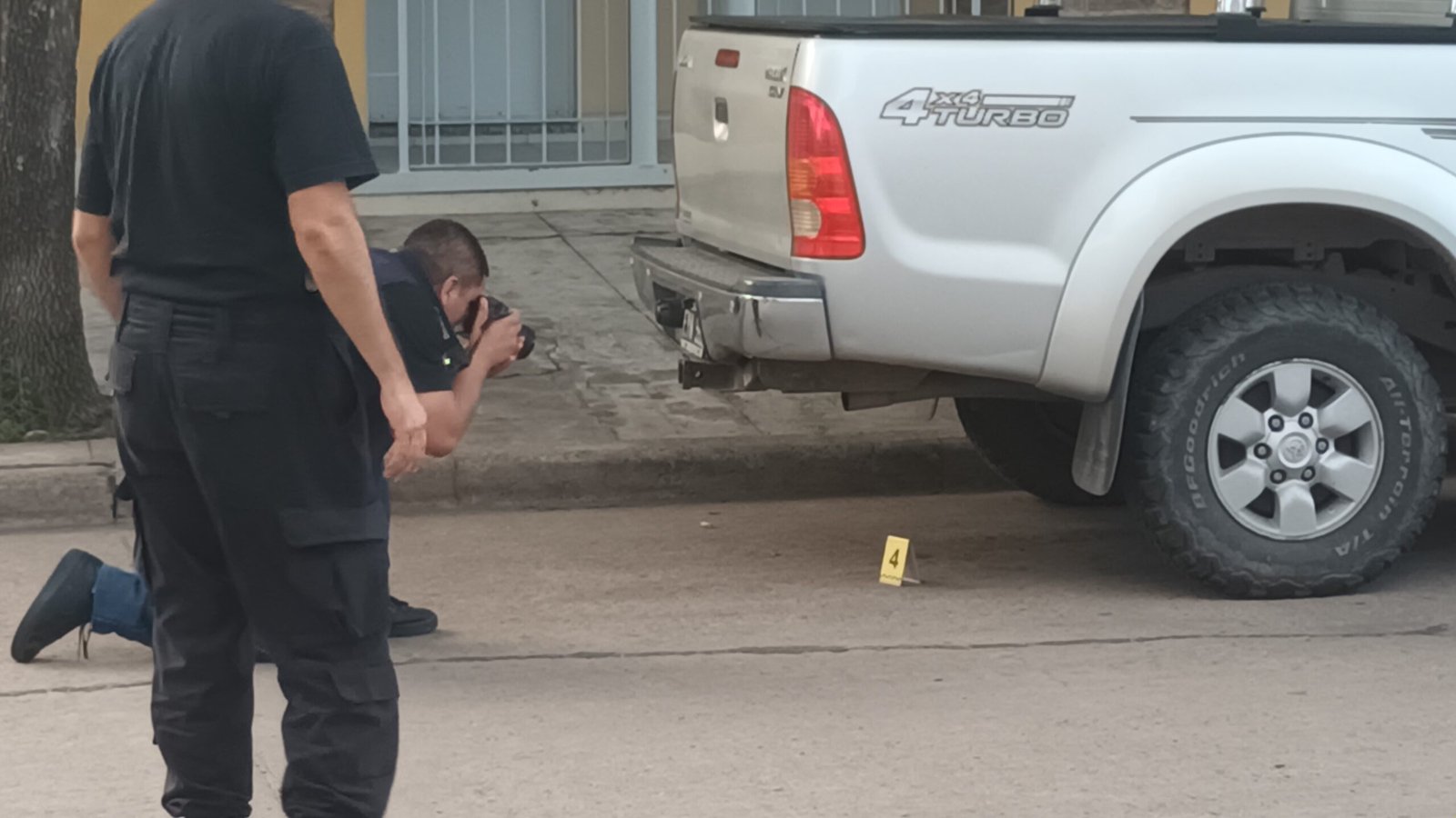 Como testimonio de la sucedido quedó un impacto de bala en la vidriera del comercio ubicado en esa ochava, que estaba cerrado. La joven fue asistida por el SIES 107 y trasladada al Hospital, mientras que la policía recogió aproximadamente 9 vainas servidas en la zona donde se produjo el tiroteo. Serían correspondientes a un calibre 9 mm.