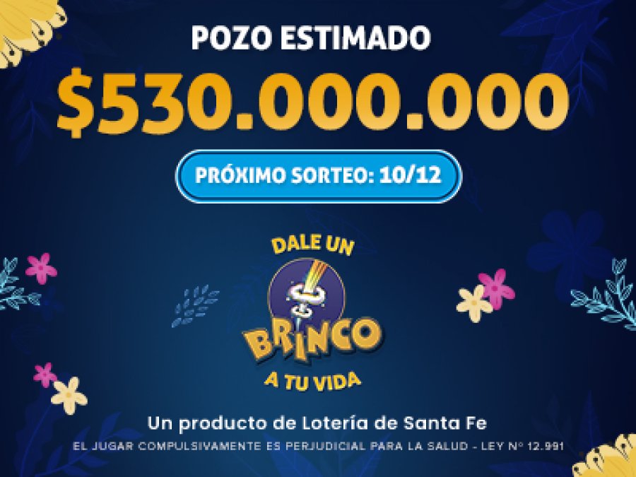 Lotería de Santa Fe informa, que hace instantes durante el sorteo de Brinco, no se registraron ganadores con seis aciertos quedando un pozo estimado de $530 millones para el próximo sorteo.