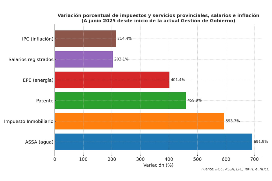 “En la Provincia los impuestos y servicios aumentaron entre un 400% y 700% en la actual gestión de Gobierno, mientras que los salarios registrados apenas superan el 200%”.