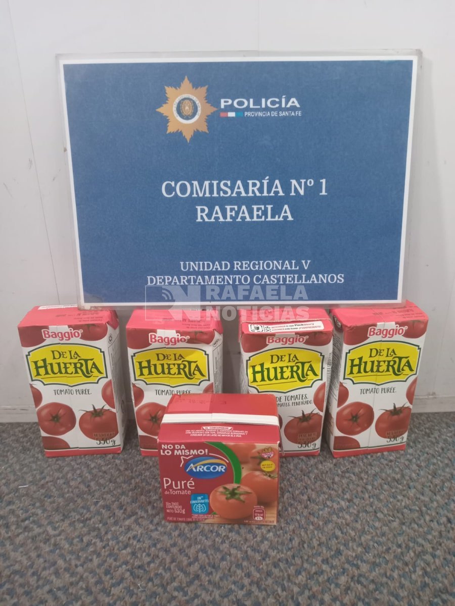 Minutos más tarde, fueron notificados del robo a un comercio ubicado en Córdoba al 1400 donde notaron el faltante de puré de tomate y envases de cerveza. Rápidamente los uniformados interceptaron a los individuos anteriores en Actis y Storni quienes fueron los autores del ilícito.