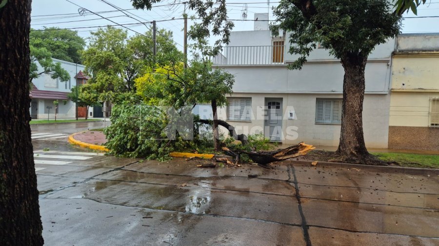 En la ciudad de Rafaela, la jornada del lunes comenzó con cielo cubierto y lluvias débiles desde temprano. Con el correr de la mañana, las precipitaciones provocaron algunos inconvenientes y destrozos puntuales, como los registrados en la intersección de calles Cervantes y Maipú.