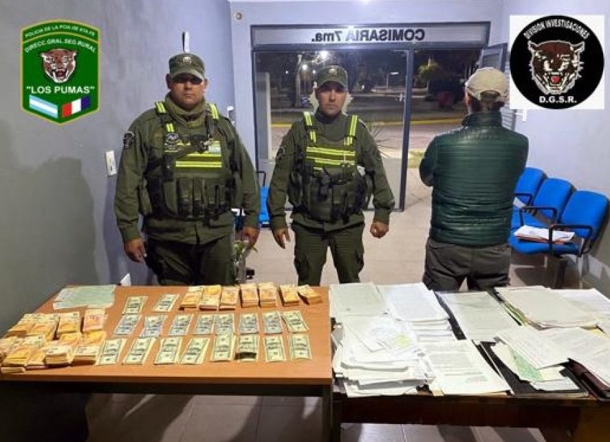 Según la información a la que accedió CeresDiario.Com Personal de la División Investigaciones DGSR LOS PUMAS tras un operativo de control de vehículo y seguridad en general, sobre Ruta Nacional N° 34 altura Arrufó, detectan el tránsito de Sur a Norte, de un automóvil marca AUDI, modelo A7, conducido por el ciudadano Daniel Andres Casanovas, quien al ser abordado por la autoridad policial se predispuso en estado de nerviosismo, a la vez que fue observado manipulando una bolsa con dinero en el interior del vehículo con intenciones de ocultamiento.