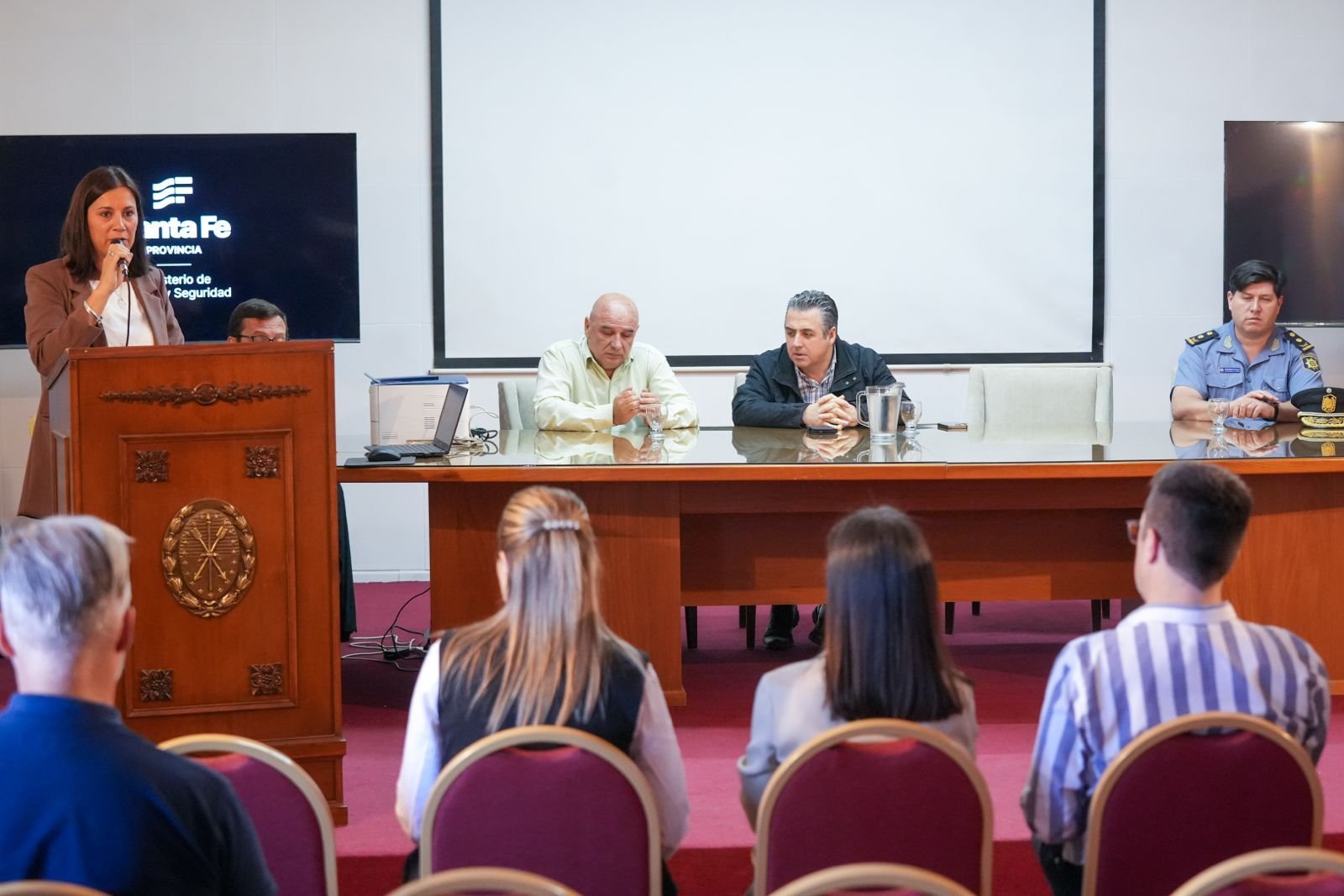 Del acto participaron también las secretarias de Gestión Institucional, Virginia Coudannes; y de Coordinación Técnica y Administración Financiera, Georgina Orciani; el director provincial de Inspección de Institutos de Formación, Dardo Simil; el subsecretario de Tecnología y Equipamiento, Armando Faraoni; y el director general del Instituto de Seguridad Pública, Mario Goyenechea.