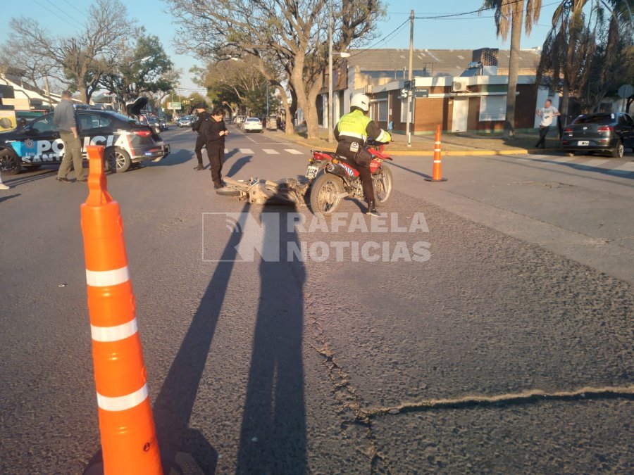 Alrededor de las 17:30 horas, se produjo un accidente de tránsito en la intersección de avenida Santa Fe y calle Álvarez entre una motocicleta 110cc y un automóvil Fiat Siena, al mando de un hombre.